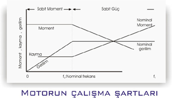 Kalkış demerajı ve duruşlarda şebeken çekilen akımları düşürerek daha küçük sigortalar ve tedarik bağlantılarının kullanımı ve elektrik ağındaki pik yüklerin azaltılması Kalkış ve duruşlarda mekanik şok'un azaltılması Kontrol aracı olarak hız ayarlama Ivme kontrolü, Her bir işlem için farklı çalışma hızı, Kurulum amaçları için yavaş çalışmaya izin, Üretim hızı ayarlama, Kontrol tork ya da gerginlik
